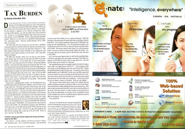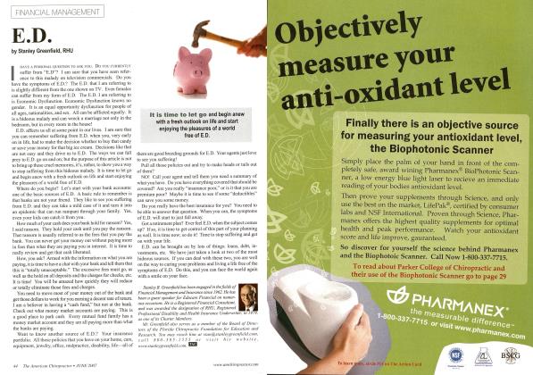 A RK YOU AFRAID THAT some day you will be walking down the street and, out of nowhere, some debt will attack you? Do you live with that fear? I think that most chiropractors do fear debt. Their mantra is to be "debt free" at all cost. Now don't take this the wrong way. I am not advocating that you should get in debt and stay in debt. I just believe that there is "life after debt1' as well as "life with debt." Debt, as I have stated in the past, is not necessarily a "four-letter word." Not all debt is bad. You must first understand what debt is and how to work with it to do one important thing: accomplish what YOU want to accomplish, not what someone else feels EVERYONE should accomplish. Got that? Good! Let's continue. Debt comes in all shapes and sizes. You probably have some of the following debt: Student loans Mortgage on a home Credit card debt Just plain debt I have chosen these four, but I am sure that you have others as well as some that I have never heard of. It really doesn't matter. Let me show you how you can deal with these four now. Student Loans. Now there is a big one! Most students leave Chiropractic College today with a six-figure loan. How can a person manage this? It's not easy. You must first remember that paying off a loan like this is like trying to eat an elephant. You cannot try to choke it down in one bite. You must do it bite by bite. The same is true with any debt. Student loans are quite unique. They allow you as long as thirty years to pay it off. They now even let you deduct some of the interest you pay as a tax deduction, so that lowers the interest rate that you arc paying, after taxes. I always suggest that people consider consolidating their loans as soon as they graduate, which locks in the interest rate and also changes the loan to simple interest instead of compound interest. I also suggest that you take the longest payout possible. This gives you a lower payment and you can always accelerate payments later to pay this loan off early. Some may suggest that you will end up paying a lot of interest and they are correct, if you kept this for the entire life of the loan. That is not what I suggest. Your major concern should be about cash flow at this time. Once your "positive" cash flow improves, you can acceler- ate your payments and pay off the debt earlier. Mortgages. "The cheapest money you will ever buy." Never forget that statement. Think about that for a moment. You get a mortgage for $150,000 at six-percent interest. You are in a thirty-percent tax bracket. That means that the loan only costs you a "net" of just 4.2%. Can you borrow money anywhere for that amount? If that is the case, then why pay off your mortgage early? If you do pay it off and then need to get to YOUR money, how do you do it'? You must BORROW it, at whatever the CURRENT rate is. That number could and will go up in the future. My advice is to take a thirty-year mortgage and, if you want to, make some extra payments and cut the length of the mortgage to suit you. Credit cards. This is the one item that could ultimately destroy mankind! Those little pieces of plastic can do a lot of hann, but they can be useful if you know how to play the game. Do you have any in your wallet? If so, what interest rate are you paying? If you are paying over twelve percent, then you need to do some work. When was the last time you called your credit card company and ask them to lower your rate? If you haven't done that then you need to do it now. Believe me when I say that they will not call you in this lifetime and offer to lower the rate because you are such a good customer! You can get a fixed rate of below ten percent, if you call and ask for it. Believe it or not, but credit cards are probably the best source of money at the best interest rate and terms at the present time. By the way, if you use a credit card for purchases for your practice, the interest you pay on that card is deductible since it is for business purposes. So, if you have a card at ten percent interest, the cost is really only seven percent if you are at a thirty-percent tax bracket. Just plain debt. The four letter kind! I've lumped all of the other debt under this category. It could be a line of credit, auto loan, equipment loan, or whatever. It's just plain old debt. If the debt was incurred to purchase something for your practice, then the interest on that loan is tax deductible. This makes the "net" cost for this money more reasonable. It is important to keep personal debt separate from business debt for that reason. It is important to keep good records, too. When was the last time you reviewed all your debt? I am not suggesting that you do this so you can beat on yourself! You might be able to consolidate some debt or refinance some debt and possibly lower your payments and the interest rate you arc paying. It never hurts to check. I have seen some amazing savings from just such a review. You might want to consider doing this one night when there is nothing worthwhile on television. Make sure you have all the information you need to do a complete review before you start. After all of this, do you now feel a little better about debt? You should! Maybe a few deep breaths are in order and close your eyes and repeat after me: "Debt is not out to attack me. I can control debt. I do not have to let debt control me." Believe it or not, debt can be your friend. Stanley B. Greenfield has been engaged in the fields of Financial Management and Insurance since 1962. He is a Registered Financial Consul- Icint, and was awarded the designation of RHU, Registered Professional Disability and Health Insurance Underwriter, in 1979, as one of its Charter Members. Mr. Greenfield has authored thousands of articles concerning tax, financial, and practice management, and has spoken throughout the world on these subjects to both business and professional associations. He is a regular contributor to numerous other professional journals. Mr. Green