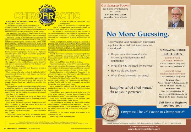Clackamas Chiropractor Cleared of False Charges CLACKAMAS. OR An administrative law judge decided a Clackamas chiropractor didn't commit fraud, pinch a client's butt or commit other improper acts but was tlic target of lies by a dis-gnintlcd former employee. Tlic Oregon Board of Chiropractic Examiners recently released it's final order which clears Kim Jameson's name. Jameson had filed a lwasuit to force the board to release the judge's order. The board hasn't done tliat. but the final order heavily quotes the judge, who exonerated Jameson of all tlic accusations except one record keeping violation. For that, she was ordered to 12 hours continuing education. In tlic new document, tlic Oregon Board of Chiropractic Examiners admits its lead witness. Caroline Rackley. committed perjury and that six of their other seven witnesses testified based on Racklcy's statements. Tlic judge said "Rackley likely provided this information in an effort to cover up her own wrongdoing and to shift suspicion and blame onto Dr. Jameson. In sliort. without information provided, directly or indirectly, by Rackley. the Board lias little or no substantive evidence against Dr. Jameson." Tlic board's order alludes to accusations tliat Rackley borrowed money from the chiropractors clients and took petty cash. In her law suit. Jameson said she lost business because of the false accusations. Sonic insurance companies won't pay for sen ices by a doctor who is being investigated, six: wrote. Some clients heard about the accusations and stopped going to her. "I'm grateful tliat my name lias finally been cleared." Jameson said in an email. "That's what IVc wanted for the past two years." Jameson intends to sue tlic board and its investigator for damages, her attorney said. Source: Oregon Live Windermere Chiropractor Sentenced to Federal Prison in Fraud Scheme CAPE CORAL. FL—A Windcrnicrc chiropractor was sentenced to five years in federal prison on Wednesday for his role in a health care fraud scheme, prosecutors said. Dr. Stephen M. Lovcll. 55. was convicted of conspiracy to commit health care fraud after a two week trial in February. His sentence also included a financial judgment of $1.695 million. Federal prosecutors alleged Lovcll and other licensed health care practitioners posed as the owners of Xtrcme Care Rehabilitation Center Inc. in Cape Coral. By claiming tlic business was owned exclusively by licensed practitioners, tlic actual owners avoided additional regulatory scrutiny. Tlic clinic also engaged in staged accidents, including submitting false insurance claims, prosecutors said. Insurance payouts from the bogus accidents were then laundered through corporations created by the conspirators, according to the federal government. Two men identified as among tlic actual owners of tlie clinic pleaded guilty earlier this > car and were also sentenced to federal prison. Source: Orlando Sentinel Australian Chiropractor Suspended for Two Years for Misconduct AUSTRALIA. A cliiropractor wlx) gave an Esscndon player hy-pcrbaric treatment lias been suspended for two years after he was found guilty of misconduct. According to findings by VCAT (Victorian Civil and Administrative Tribunal). South Yarra chiropractor Dr Malcolm Hooper also cliargcd a "vulnerable" cerebral palsy patient $5().(X)() forunproven treatments. Dr Hooper who claims hypcrbaric chambers can be used to "uprcgulate peptide use", was accused of using questionable and expensive oxygen therapies on 30 different conditions including cerebral palsy, cancer, multiple sclerosis, infertility and autism. He was found guilty of six different counts of misconduct and his registration was cancelled. He will not be able to rcapply for his certificate for two years, unless lie successfully appeals llie decision. Tlic Chiropractic Board of Australia will also hold Dr Hooper to an undertaking tliat lie will not use hypcibaric chamber treatment on patients with 10 conditions, including adult cerebral palsy. The VCAT panel ruled tliat due to Dr Hooper's "zealotry and unfaulting belief" in tlic healing powers of oxygen tlicrapy only a lengthy period of cancellation would protect the public. VCAT and tlic Australian Chiropractic Board will also hold Dr Hooper to an undertaking tliat he will provide patients with medical research tliat discredits the effectiveness of oxygen therapy on 20 conditions. In his judgment, presiding member Robert Davis said at no point did Dr Hooper acknowledge he was wrong. "It is almost impossible to envisage tliat Dr Hooper would concede tliat his method of earn ing out the treatment liad faults in any way." Ik said. "Dr Hooper deserves a severe sanction and it is only alter a lengthy period with a severe sanction that he may realise the error of his ways. "In our view, nothing less Uian cancellation is sufficient to drive tliat message home to Dr Hooper. "The public cannot be protected with anything less than cancellation." Tlic Chiropractic Board of Australia who lodged the case said the decision showed tlic length the board would go to protect tlie public. "Tlic VCAT decision sends a clear message: the Board will not tolerate chiropractors who provide treatment tliat puts the public at risk and is not in tlicir patients' best interests." said cliainnan Dr Phillip Donato. Source: Herald Sun Pass on the information to inform other D.C. s about events that are really happening to chiropractors. Forjurther information, fax 1-305-716-9212. Write us at editoriaitiflmchiropractor.com or ■■CO138, 8619 XW 68th St., Miami, FL 33166.